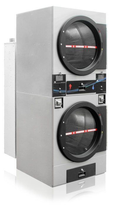 Máy sấy tự phục vụ xếp chồng công nghiệp xuất xứ: Blue Whale- Trung Quốc, công suất: 16x2 kg khô/mẻ, kích thước (WxDxH) 800x1100x1970 mm trọng lượng 360kg